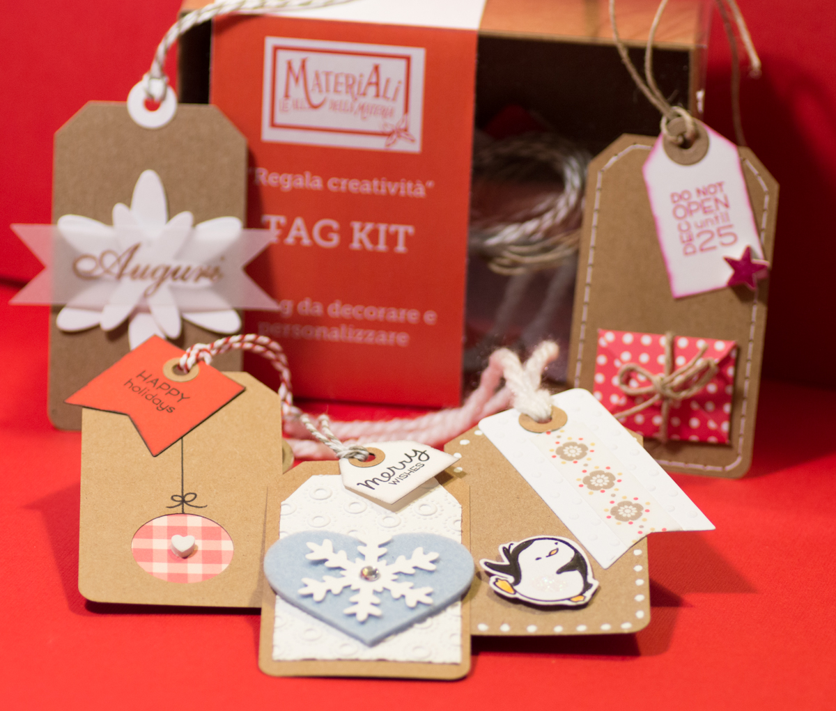 Un kit con il necessario per costruire i tuoi tag di Natale, originali chiudipacco che puoi decorare e personalizzare secondo la tua fantasia… Può diventare anche un piccolo pensiero da donare ad un’amica creativa!